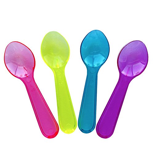 Frozen Dessert Supplies Transparent Mixed Tasting Spoons - 3 Inch Mini Plastic Taster Spoons for Sampling Food, Ice Cream, Desserts, or Spices - Beautiful Colors & Fast Shipping! 100 Count