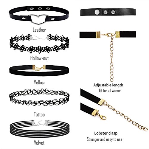 - MULTI STYLES: 12 pcs different choker necklaces, multiple choices, have classic velvet with pendant, lace, gothic tattoo, elastic tassel match different dressing style, make you unique and attractive