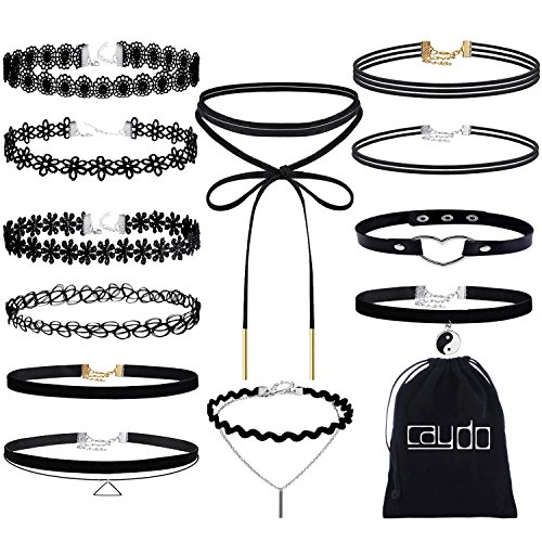 Caydo 12 Pieces Black Choker Necklace Lace Choker Tattoo Necklace for Women and Girls