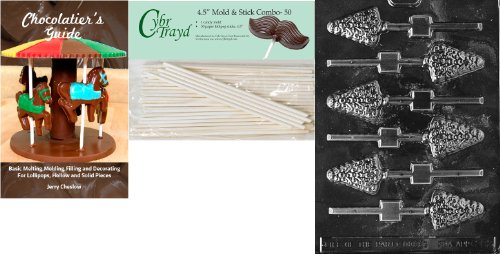 Cybrtrayd 'Small Tree Lolly' Christmas Chocolate Candy Mold with 50 4.5-Inch Lollipop Sticks and Chocolatier's Guide