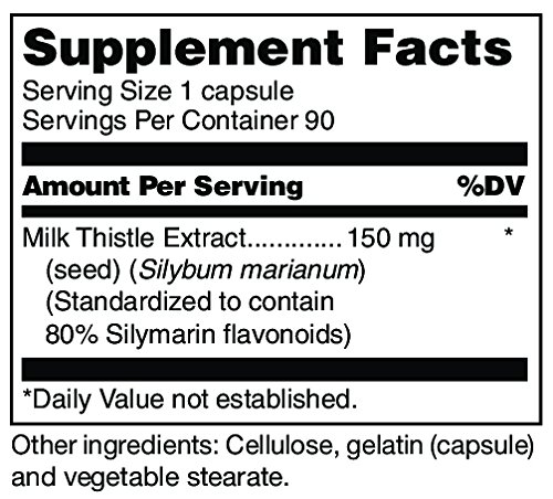 Silymarin/Milk Thistle capsules contain 150 mg of milk thistle extract, standardized to contain a minimum of 80% of the flavonoid silymarin.