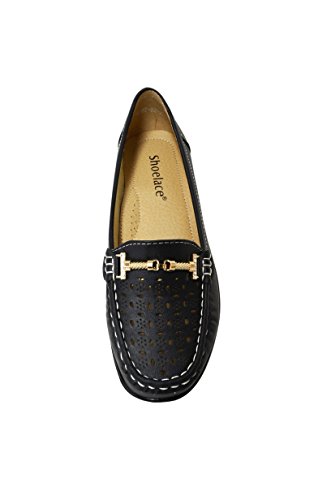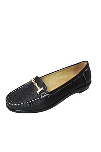 | (Shoelace)/Women's/Loafers Slip-Ons/DIRECT FROM USA/Women's Soft Faux Leather Perforated Buckles Moccasin Loafer Slip On Shoes (VIVI) |