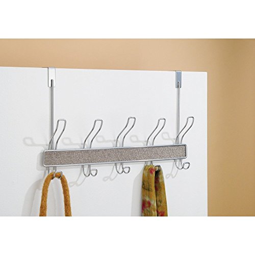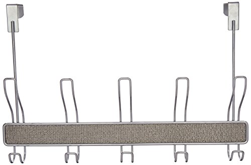 InterDesign Twillo Over Door Storage Rack – Organizer Hooks for Coats, Hats, Robes, Clothes or Towels – 5 Dual Hooks, Metallico
