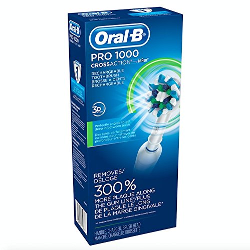 The Oral-B PRO 1000 provides a clinically proven superior clean vs. a regular manual toothbrush. The professionally inspired design of the Cross Action brush head surrounds each tooth with bristles angled at 16 degrees, and 3D cleaning action oscillates, rotates, and pulsates to break up and remove up to 300% more plaque than a regular manual toothbrush. The pressure sensor lights up if you brush too hard to prevent harmful over-brushing and there is 1 mode, plus an in-handle timer to help you brush for a dentist-recommended 2 minutes. Best of all it’s brought to you by Oral-B – the #1 brand used by dentists worldwide. Compatible with the following replacement toothbrush heads: CrossAction, 3D White, Sensitive Clean, Precision Clean, FlossAction, TriZone, Deep Sweep, ProWhite, Ortho, PowerTip, and Dual Clean.