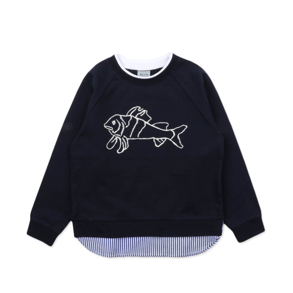 심플한 셔츠를 레이어드 한 듯한 디자인으로 타운웨어로 베이지나 네이비 면바지와 코디해서 깔끔하게 제안할 수 있는 아이템입니다. 앞판에 물고기 자수 포인트로 크래프트적인 메세지를 잘 전달해줄수 있습니다. 말랑한 스판 소재의 느낌이 좋은 아이템으로 BT11PT04NV 와 세트 착장으로 제안했습니다.