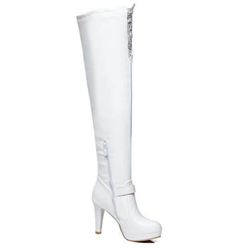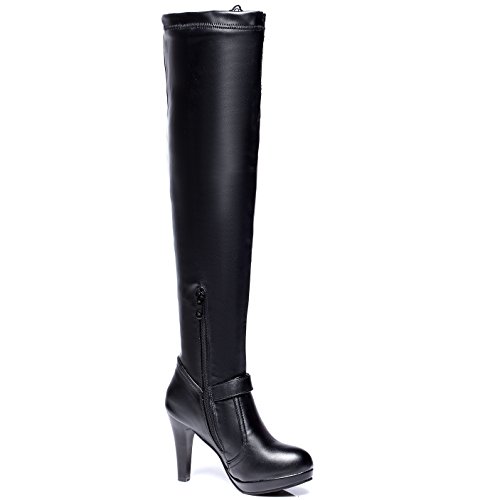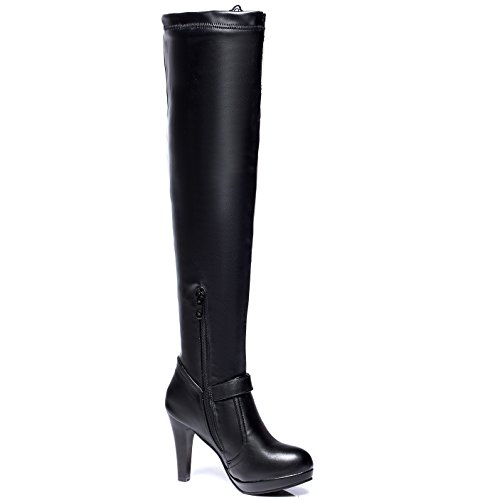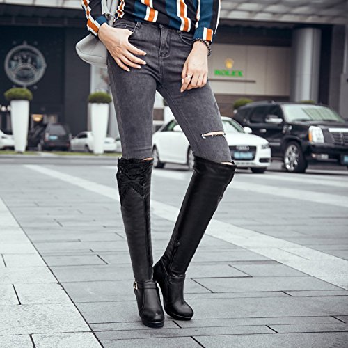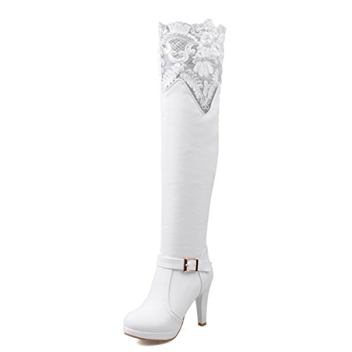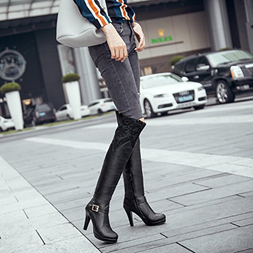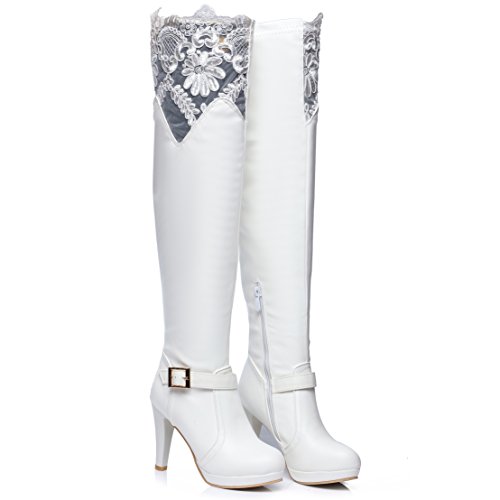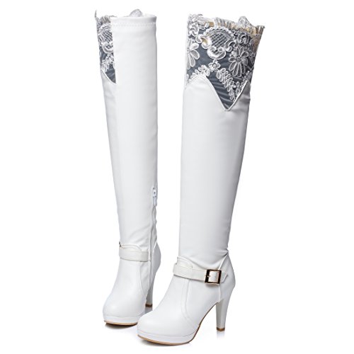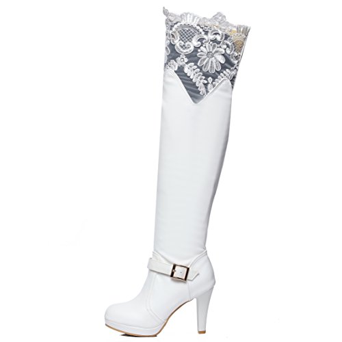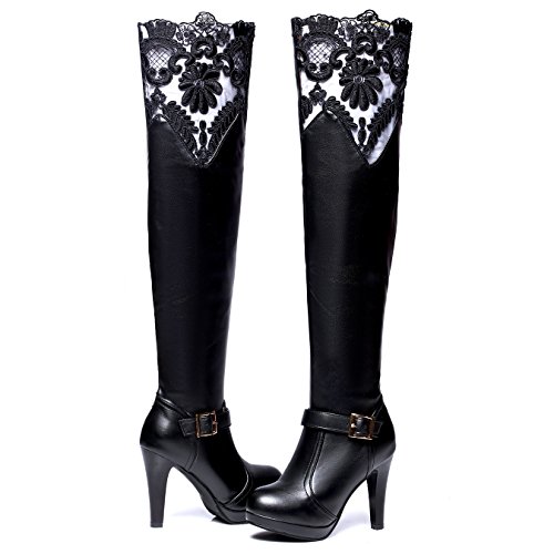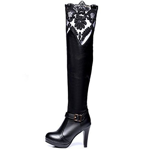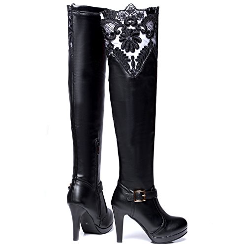 JIAME Ladies Womens Sexy Bud Silk Lace Over The Knee Thigh High Platform Heel Stretch Boots