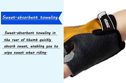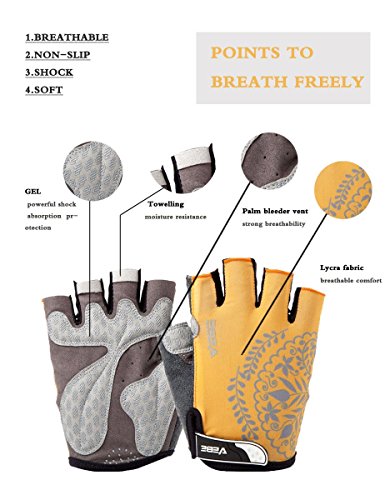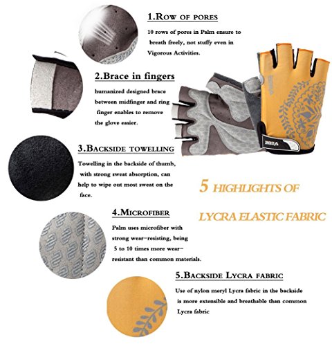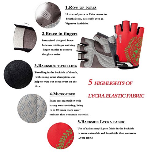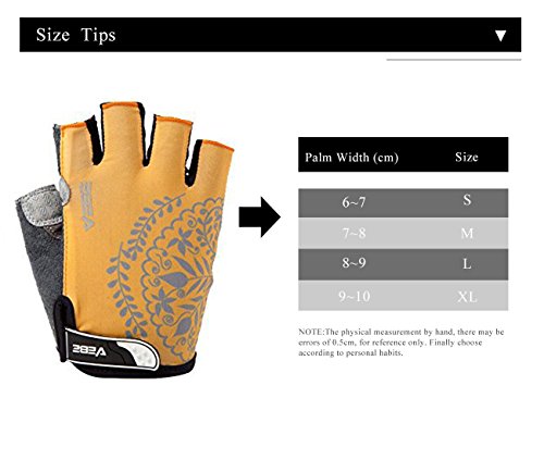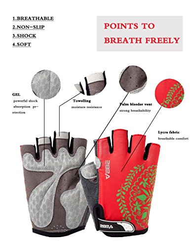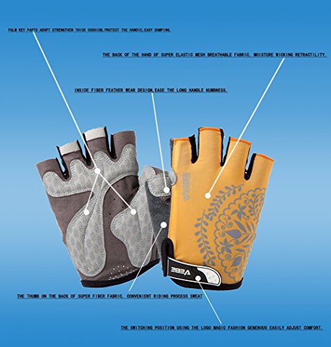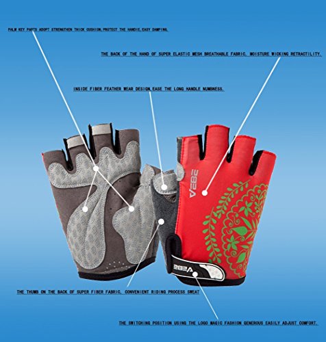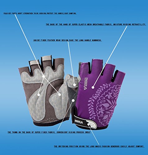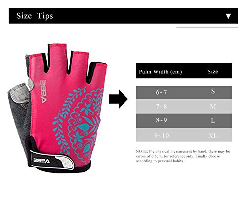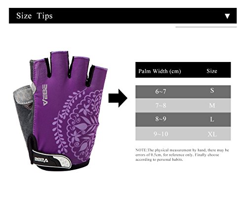 Product Description This is a NO RISK Purchase: Protect your hands without breaking your budget. The value packed select glove has strategically placed gel-foam palm padding to relieve pressure on sensitive nerves and reduce hand numbness. A soft, low profile wiping surface on the thumb and an easy-to-operate hook-and-loop closure complete the package. Product Specification: - Gender: unisex - Size: S/M/L/XL - Color: red/rosy red/purple/yellow - Type: half finger cycling gloves - Season: summer/spring/autumn Product Feature: - Double-thread lockstitch sewing prevents from taking off the line - Palm with wear-resistant microfiber leather (breathable, environmental-friendly) - Damping design on the palms helps to reduce road vibration and relieve hand fatigue - Pull buckles on the fingertip make it easier to take off the gloves - Venting holes on the palm avoid stuffiness and make you feel fresh when riding - Lycra materials on the back of the hands: comfortable and flexible for stretching and bending. Detail Sizes: Palm Width: S: (2.4'-2.8'); M: (2.8'-3.1'); L: (3.1'-3.7'); XL: (3.5'-3.9') S: (6-7cm); M: (7-8cm); L: (8-9.5cm); XL: (9-10cm) About us: We value a lot of our customers and want you to be 100% satisfied with our product, so we will try our best to achieve that goal. We appreciate your reviews! However, if you have any issues with our product or service, please give us a chance to review it first and we will definitely resolve it for you. 0