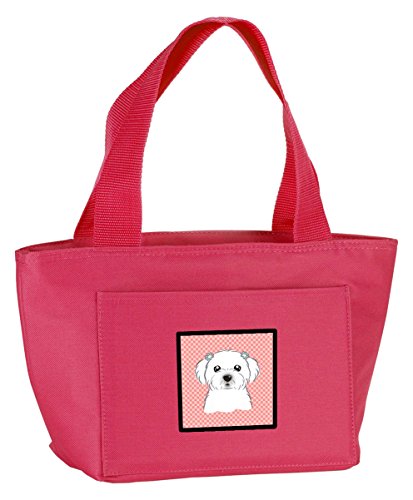 Caroline's Treasures BB1208PK-8808 Checkerboard Pink Maltese Insulated Lunch Bag, Large, Multicolor
