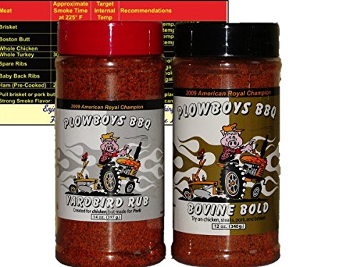 Plowboys Championship Barbecue BBQ Dry Rub Bundle (Plowboys Yardbird 14 oz and Bovine Bold 12 oz) with Complimentary Miniature Meat Smoking Guide Magnet