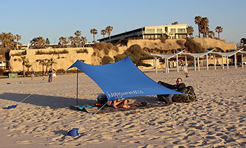 HappySummer Beach Tent with sandbag anchors—the portable, lightweight, 100% lycra SunShelter with UV protection. The perfect SunShade canopy for the entire family.