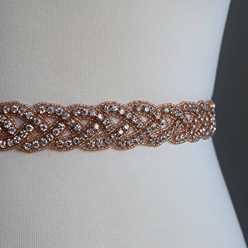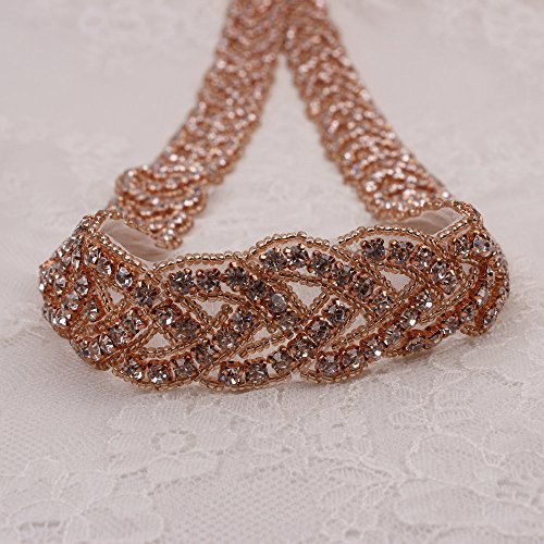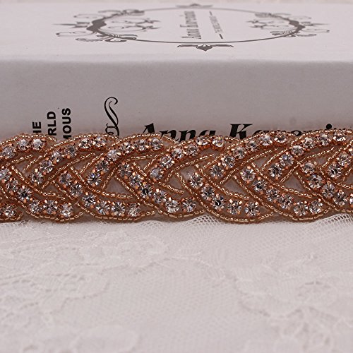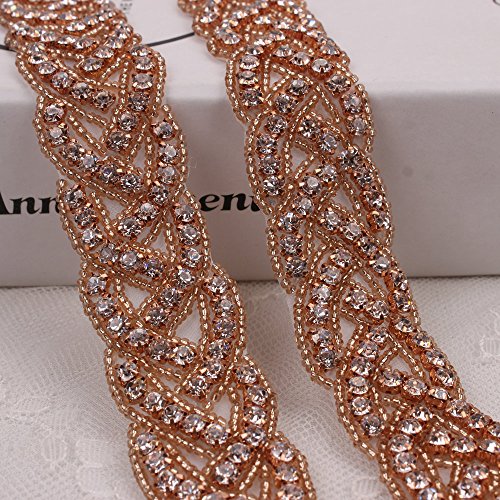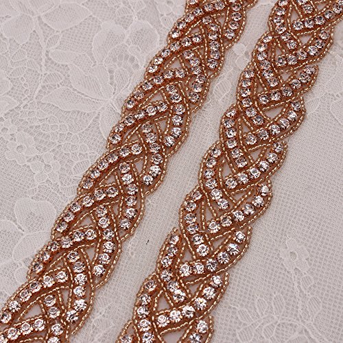 Rose Gold Bridal Gown Sash Rhinestone Applique DIY Wedding Belt by Sewing or Ironing on -1 Piece(1”36”in)