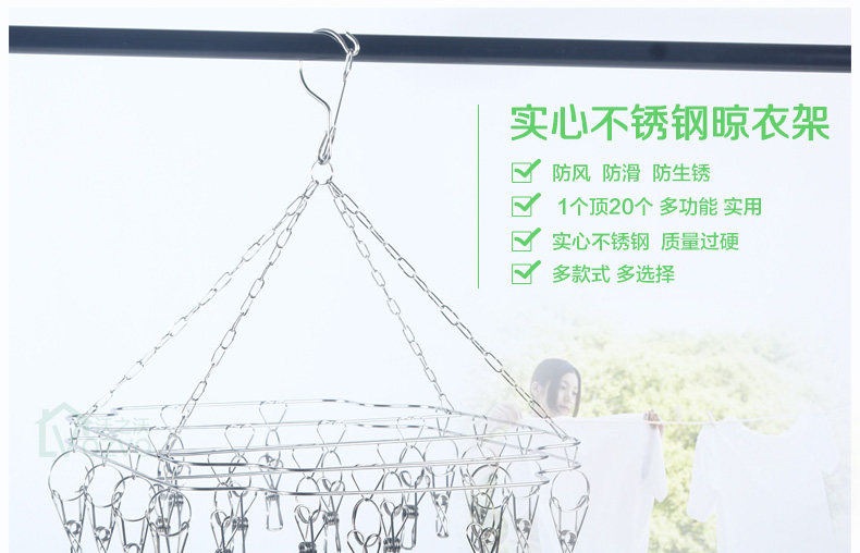 This is a lot of functions of the 20 stainless steel clip drying rack? drying function? belonging to the home necessaryclothes drying. A top 20 common hanger! The market demand? especially for families with children to buymore than 2!
