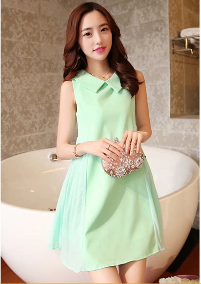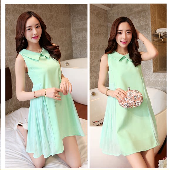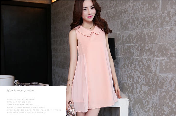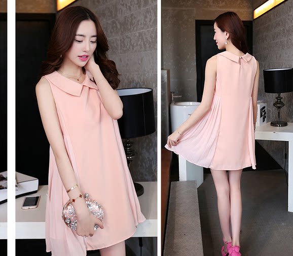 孕妇装韩版纯色压褶A字连衣裙 娃娃领宽松大码雪纺孕妇连衣裙