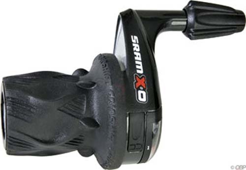 SRAM X.0 front (left) twist shifter. - All SRAM front shifters work with all major brands of front derailleurs