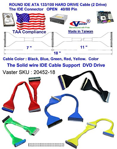 Vaster, UDMA 40/80 Round IDE/EIDE Hard Drive or DVD Rom Data Cable, 2 Drive 18 Inches