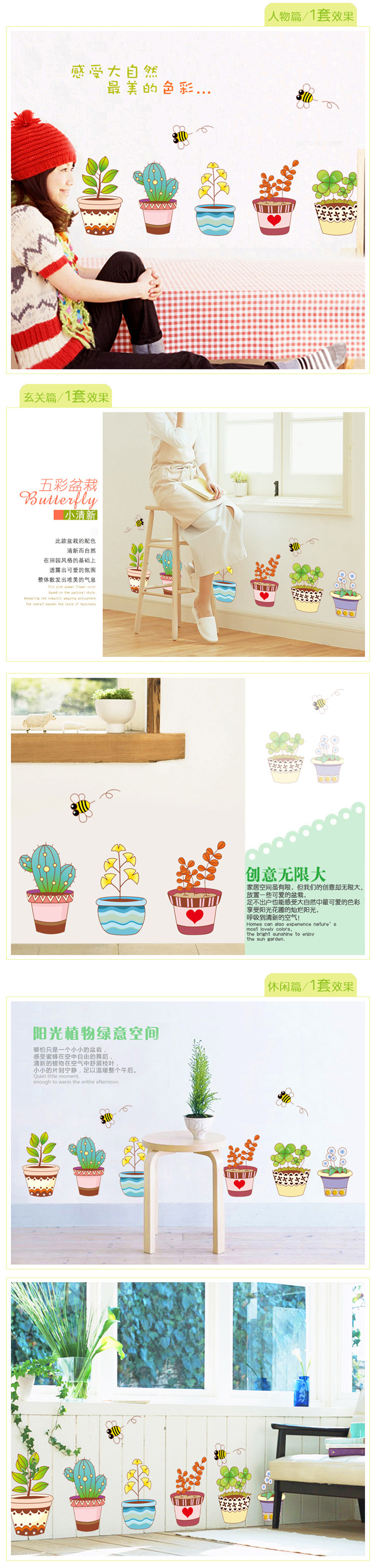 墙贴纸 可爱小盆栽 墙纸贴墙贴画贴花 田园风格 墙壁贴纸