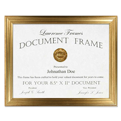 -. Binding : Misc. -. Brand : Lawrence Frames -. Color : Gold -. EAN : 0751148069991 -. Feature : Beautiful and decorative picture Frame / High quality black velvet backing / Vertical or horizontal tabletop display or can be hung on a wall with installed hangers / Wipe clean with dry cloth, glass Included / Holds 8.5 inch by 11 inch photo, vertical or horizontal -. Label : Lawrence Frames -. Manufacturer : Lawrence Frames -. Model : 536281 -. MPN : 536281 -. PackageQuantity : 1 -. PartNumber : 536281 -. ProductGroup : Home -. ProductTypeName : HOME -. ProductTypeSubcategory : other-professional-frames -. Publisher : Lawrence Frames -. Studio : Lawrence Frames -. Title : 8.5x11 Sutter Burnished Gold Picture Frame -. UPC : 751148069991