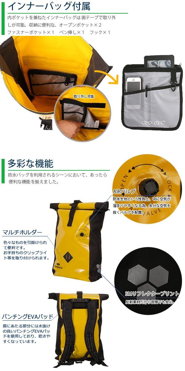 | 普段使いに十分な収納力の防水生地を使用したバックパックです。 |