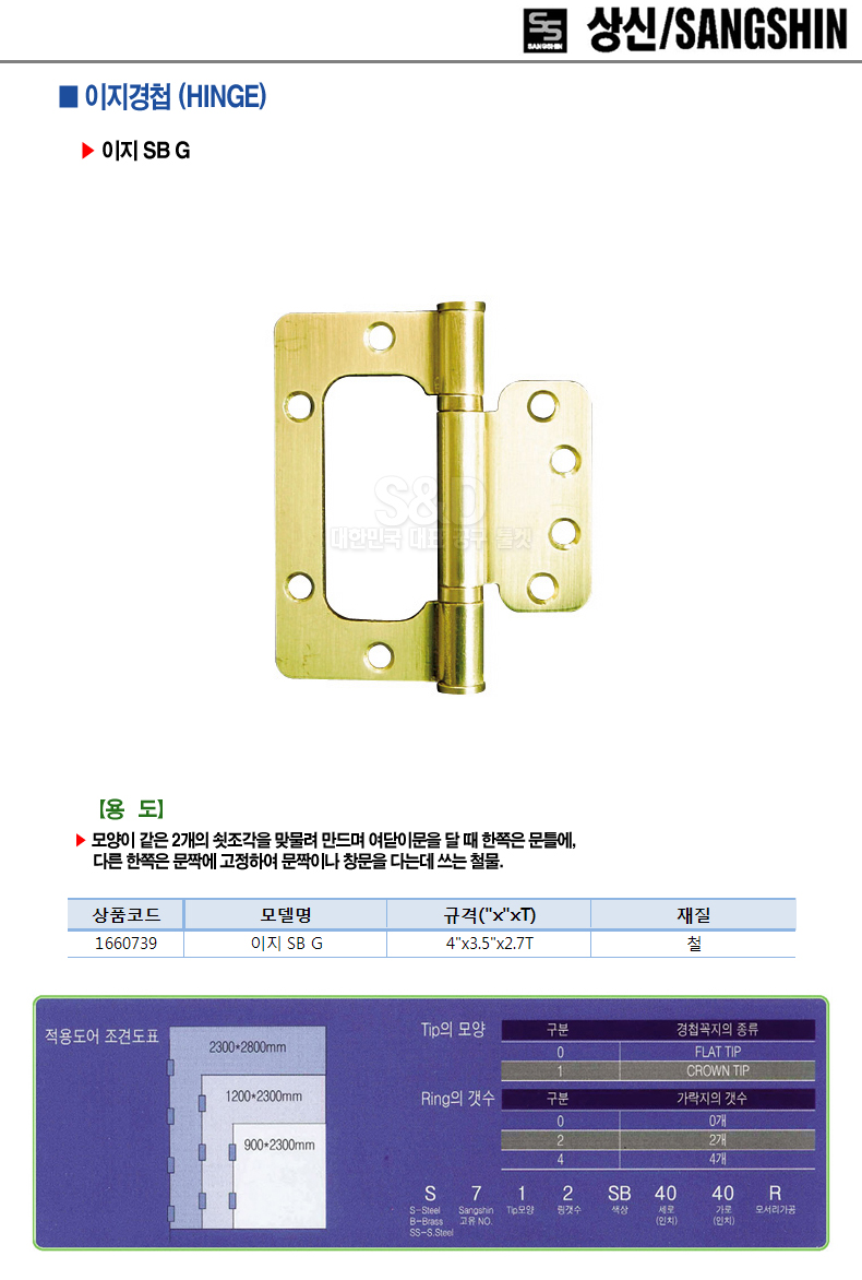Hexagonal socket head hinge hinge head SBG_4x3.5x2.7T