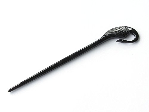 Black crane hair stick with a beautiful crane carved at the top, 100 % hand made from carved from organic buffalo horn - same molecular nature as hair (keratin), so it GLIDES BETTER THROUGH THE HAIR and cause no static electricity. Finished with Japanese polishing oil- the highest, safest quality polishing oil in the world. This is made by hand, not by industrial machine like other wooden hair stick. Length approximate: 17 cm (6.69") Length and width of the carved crane: 5 cm (2.36") and 3.3 cm (1.30") Length of the function part approximate: 12 cm (4.72") Thickness: 0.7 cm (0.28") All our products are handmade using natural materials. Each piece is unique: variations in the shape, shade and color tones are characteristics of an exclusive item. Item will be shipped after 1 day of payment and you will receive the item in about 3 weeks. We will confirm shipping time and provide the tracking link. Tags: hair, pin, stick, fork, accessories, accessory, crane, bird, hair stick, hairstick, bird hair stick, horn hair stick, horn, hair pin, hair fork SKU : HA051Feature