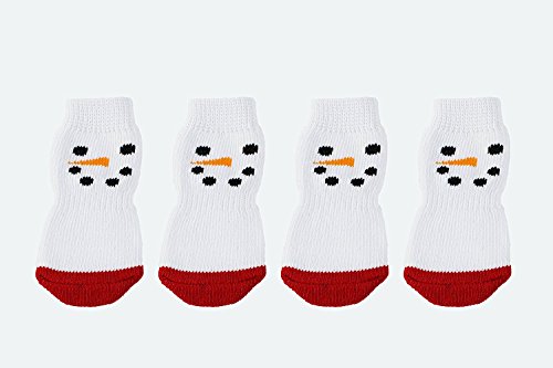 -. Feature : Unstretched sock cuff width of 2" and paw width 2.25" / Snowman design with red toes / Rubber paw pads / Easily slips on your pup / Adorable way to keep your pet's paws warm this holiday season.