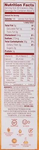-. Feature : Nutrient dense - provides 166g of whole grains / On trend, great tasting all family flavor / 30 crackers per serving / No artificial flavors or colors; No hydrogenated oils / Supports a nutritious snack during the day / Van's Natural Foods