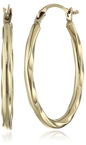 -. Title : 14k Gold Oval Twist Hoop Earrings