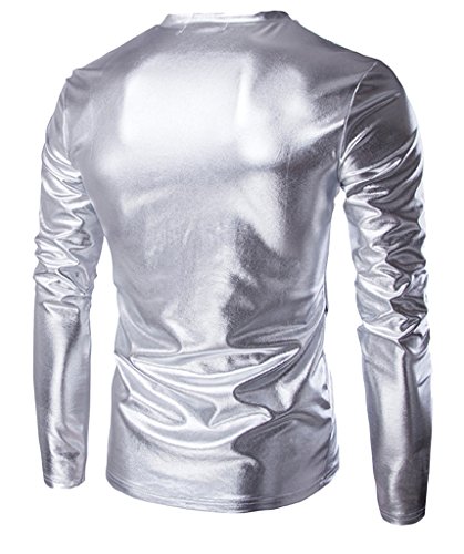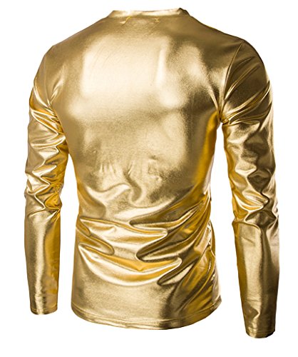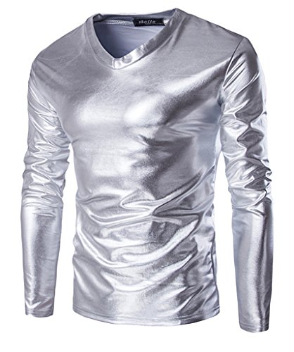 -. Feature : 60% polyester, 40% cotton / Metallic paint, Shinny under light / Slim fit muscle shirt / Glossy appearance, eye-catching and snug-fitting / PLS CHECK SIZE INFO IN PRODUCT DESCRIPTION BEFORE PURCHASE
