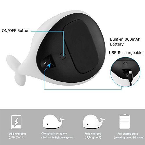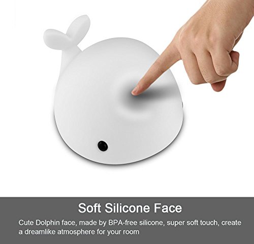 - [Super Cute Light]: Super cute dolphin or whale face made by BPA-free washable silicone, with upgraded craft, make the super cute surface thiner but more soft and comfortable, tap down and rebounce back rapidly. With soft light, it creates a dreamlike atmosphere and keeps your beloved ones company as a tender guardian at night.