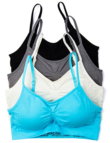 Our latest addition to our Kalon family is this layering bra. Adjustable straps. It's made out of a seamless nylon spandex material. 92% Nylon 8% Spandex. There is Removable Padding. Straps are Not removable: No more losing straps in the wash!One Size Fits Small-Large Juniors or XS-M Women Best. Model wears One Size; Model measurements: Bust: 33'', Under Bust: 30'', Waist:26'', Hip: 37'', Height: 5'11''. Comes in a variety of colors you're sure to love: Black, Ivory, Beige (Nude), Charcoal Gray, Aqua Blue, Soft Neon Coral, Currant Purple, Dark Purple, Emerald Green, Fuschia Pink, Jade, Lavender, Neon Lime, Mint, Mustard Yellow, Navy Blue, Royal Blue.