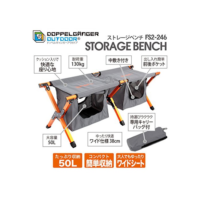 DOPPELGANGER(DOPPEL GANGER) 아웃도어 접이식식 storage 벤치 【내가중130kg/수납 50L】 FS2-246