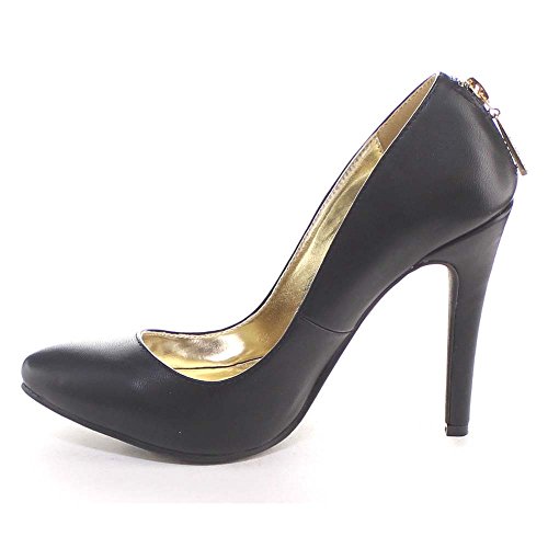 Product Description These classic and trendy pumps are a must-have for any stylish gale! Designed with closed pointy toe front, back zip closure, stiletto heel, and padded insole. They are easily on/off. 0