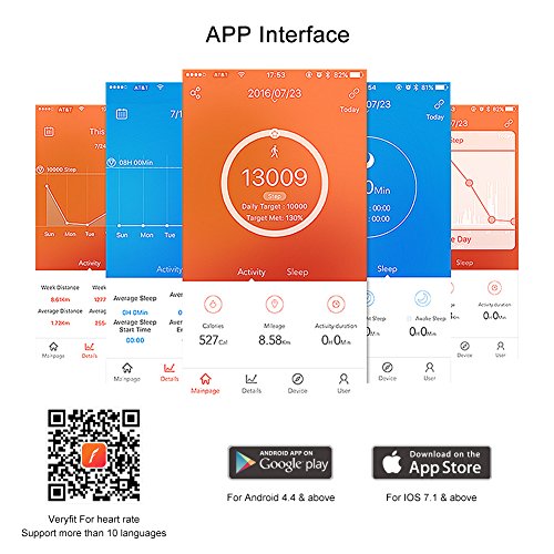 Fitness tracker Compatible With Android 4.4 and Above and IOS 7.1 and above,support Bluetooth 4.0.Download "Veryfit Pro" APP from Google Play Store and Apple Store,Or scan the QR from the Retail Box.Please don't use other APP. Please notice that this fitness tracker without heart rate monitor.