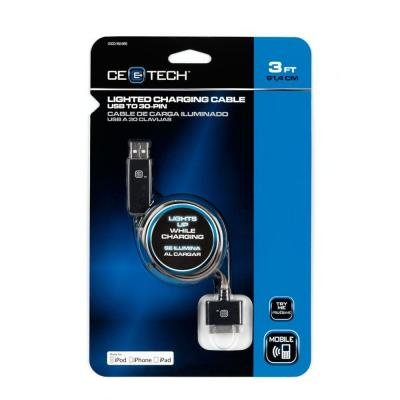 3 ft. USB to 30-Pin Lighted Charging Cable - Black-CE Tech-NEW SKU 37