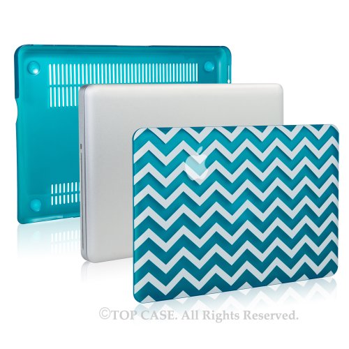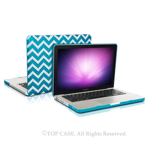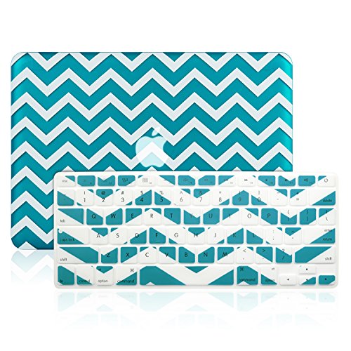 TOP CASE 2 in 1 - Chevron Series Hard Case Cover & Matching Color Chevron Keyboard Cover Skin for Old Generation Macbook Pro 13" (A1278/with or without Thunderbolt)-NOT for Retina Display-Aqua Blue