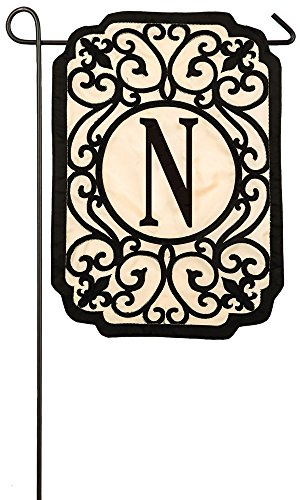 Evergreen Filigree Monogram N Applique Garden Flag, 12.5 x 18 inches