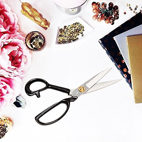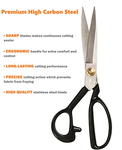 PROFESSIONAL - Our versatile tailors scissors is made from industrial grade materials -premium high carbon steel- wich is a high quality metal that is stronger and harder than stainless steel, and has precision ground edge that stays sharp longer and is more durable.