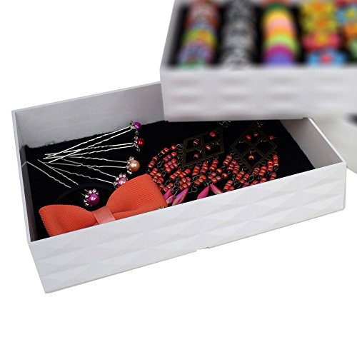 -. Title : Stackable Storage Display Tray for Jewelry Organizer, Lined Color Velvet, 7.5"x5.6"x1.6", White Case
