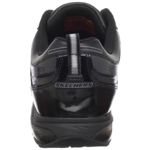 Amazon.com The sporty Skechers Revvolution women's fitness shoe features a smooth leather upper with supportive glossy overlays and cool perforated panels. It is crafted with the Revv Air shock-absorbing midsole and a slip-resistant rubber outsole that provides great grip on a variety of surfaces. 0