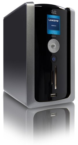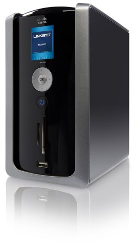 -. Binding : Electronics -. Brand : Linksys -. Color : Red -. EAN : 0745883587353 -. Feature : Provides two bays with SATA interface, easy installation and removal - First bay pre-installed with one 1 TB, green-power hard disk drive, Second bay available for end-user upgrade / Provides two USB ports and one media reader that supports CF/MD/MS/SD/XD/MMC memory cards / Provides a LCD display for system status, configuration and media card backup or import progress / Supports 10/100/1000 Ethernet connection / Supports RAID1/JBOD configurations -. IsAutographed : 0 -. IsMemorabilia : 0 -. Label : Linksys -. Manufacturer : Linksys -. Model : NMH410 -. MPN : NMH410 -. PackageQuantity : 1 -. PartNumber : NMH410 -. ProductGroup : Home Theater -. ProductTypeName : TUNER -. Publisher : Linksys -. Studio : Linksys -. Title : Cisco-Linksys 1 TB Media Hub with LCD -. UPC : 745883587353