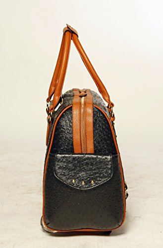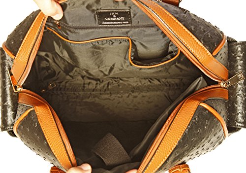 -. Title : JKM & Company USA Black Ostrich & Brown Faux Leather iPad Tablet or Laptop Tote Carryall or Rolling Briefcase