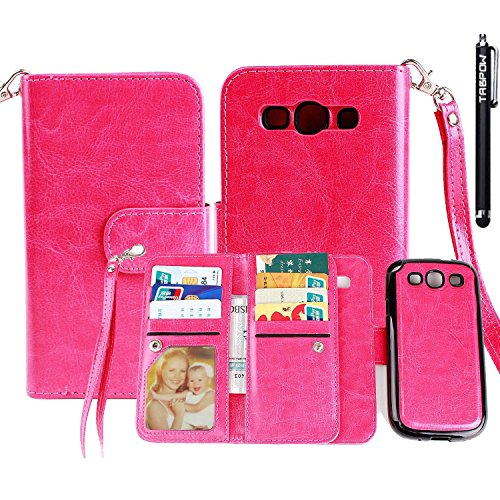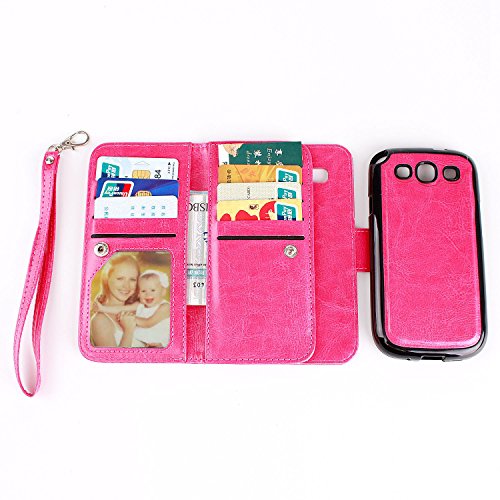 Galaxy S3 Case, S3 Case, TabPow [Wallet Case] 9 Card Holder [Detachable Wallet Folio] PU Leather Flip Case With Lanyard Strap For Samsung Galaxy S3 I9300, Hot Pink