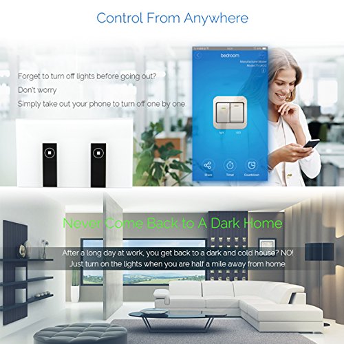 【APP Remote Control】 Connect with home Wi-Fi without hub required. Remotely turn on/off light or other appliance with smartphone/tablet.