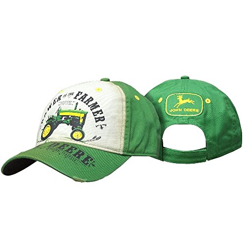 Product DescriptionJohn Deere baseball cap with white front vintage tractor screen. The bill is solid green with John Deere screen.0