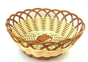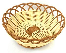 Product Description Perfect to serve fresh rolls, muffins, fruits. Made from durable woven poly cords. Nature and brown poly cords give it a modern look. Dish washer safe. 0