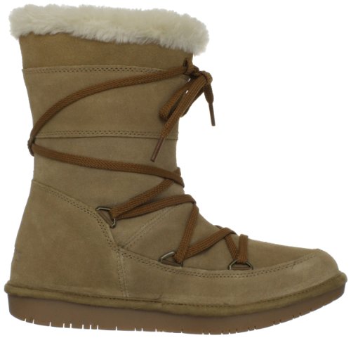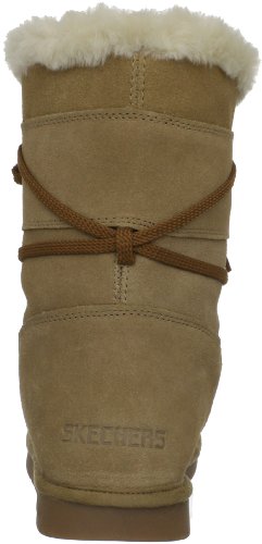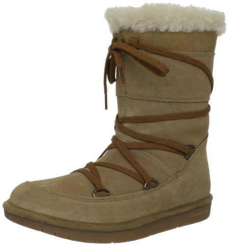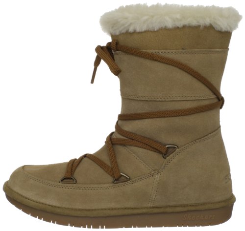 Studio : Skechers Publisher : Skechers Binding : Apparel Amazon.com Sail to the Moon in cozy style in this soft boot from Skechers. The lacing pattern lends a rustic vibe while the fleecy interior offers warmth and a soft, inviting fit. The flat sole delivers a confident stride should the going turn slippery. 0