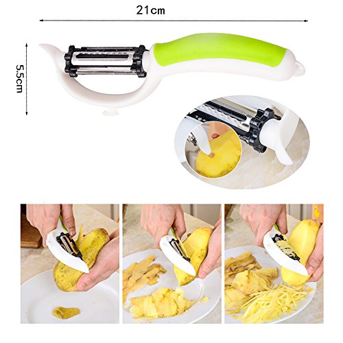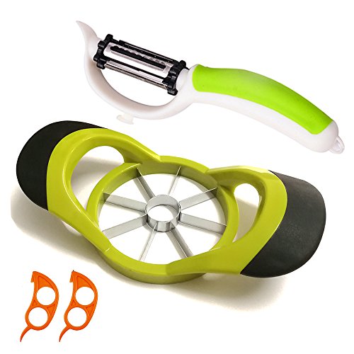 - SLICER & PEELER SET - Multipurpose straight peeler and razor-sharp 8-blade apple slicer in one set. You can choose the peeler to peel some fruit and vegetable like apples, pears, oranges, mangos potatoes, carrots, etc. 8-blade apple cutter can help you slice apple on 8 pieces so easy and fast! Having this set will make it easier for you to peel or slice!