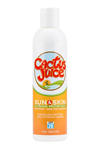Cactus Juice Outdoor Protection's blend of Prickly Pear Cactus, emollients, moisturizers and sunscreen provides all round protection from dry skin and sun burn and a natural and effective shield from Nature's assaults. The lotion carries a light citrus scent, leaves no oily residue and contains no harmful chemicals.