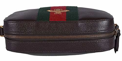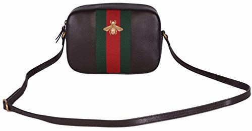 -. Title : Women's Leather Red Green Web BEE Crossbody Handbag (Brown)