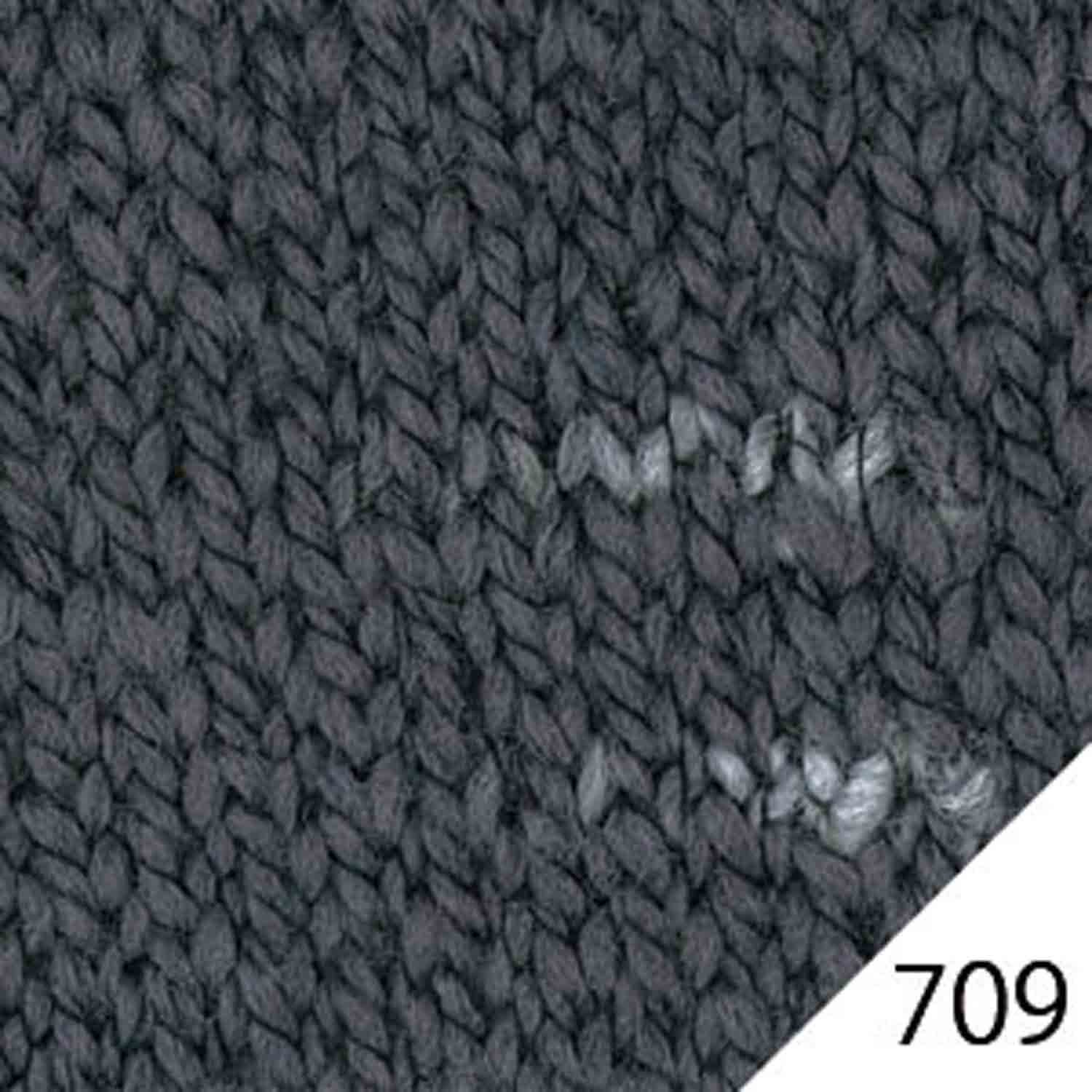 A fun semi-fancy yarn in which a knot like a whip comes out in a different color to a wave-like top melange thread.